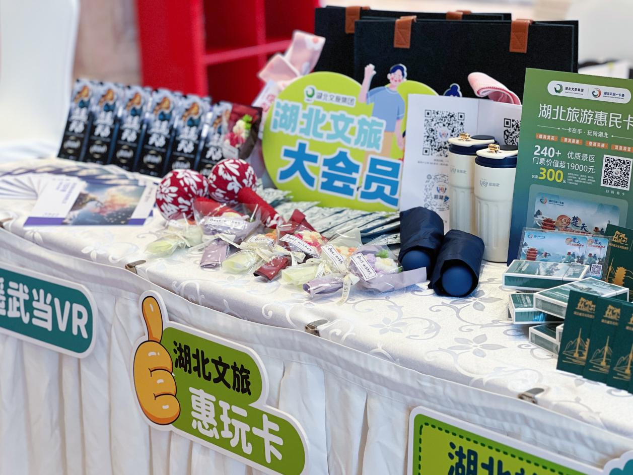 數(shù)旅集團(tuán)在現(xiàn)場(chǎng)擺展,工作人員主動(dòng)介紹“湖北文旅大會(huì)員”權(quán)益、湖北文旅惠玩卡產(chǎn)品、湖北旅游惠民卡產(chǎn)品和《逍遙武當(dāng)》VR大空間沉浸式體驗(yàn)項(xiàng)目,吸引了大量游客駐足。