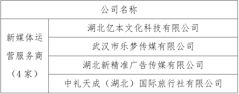 湖北數(shù)字文旅集團(tuán)有限公司2025年合作服務(wù)商入庫(kù)招募于2025年5月30日在官網(wǎng)發(fā)布招募公告。經(jīng)招募人確認(rèn),現(xiàn)進(jìn)行合作服務(wù)商入庫(kù)公示。