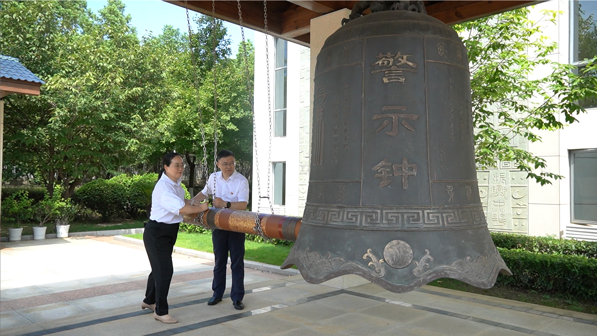 廉政文化廣場上,全體參加人員莊嚴肅立,支部書記、董事長張啟駿和文旅咨詢公司副總經(jīng)理王茜一同敲響了廉政警鐘,警鐘長鳴、聲聲入耳,警示每名黨員干部要立足崗位、守住初心,始終做到明紀(jì)守法、自律自省,知敬畏、存戒懼、守底線,永葆清廉本色。